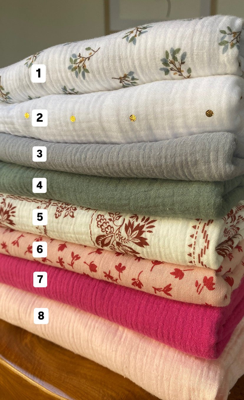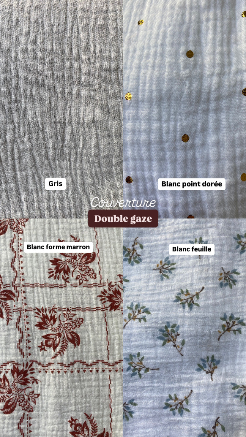 🧵 Un côté de la couverture est confectionné avec un tissu en double gaze, un matériaux doux et léger.
