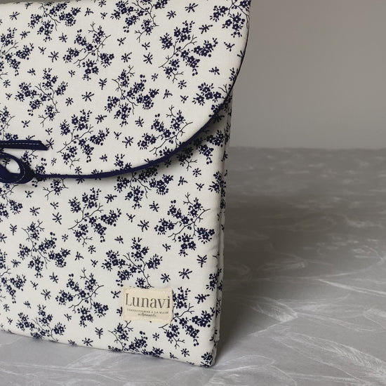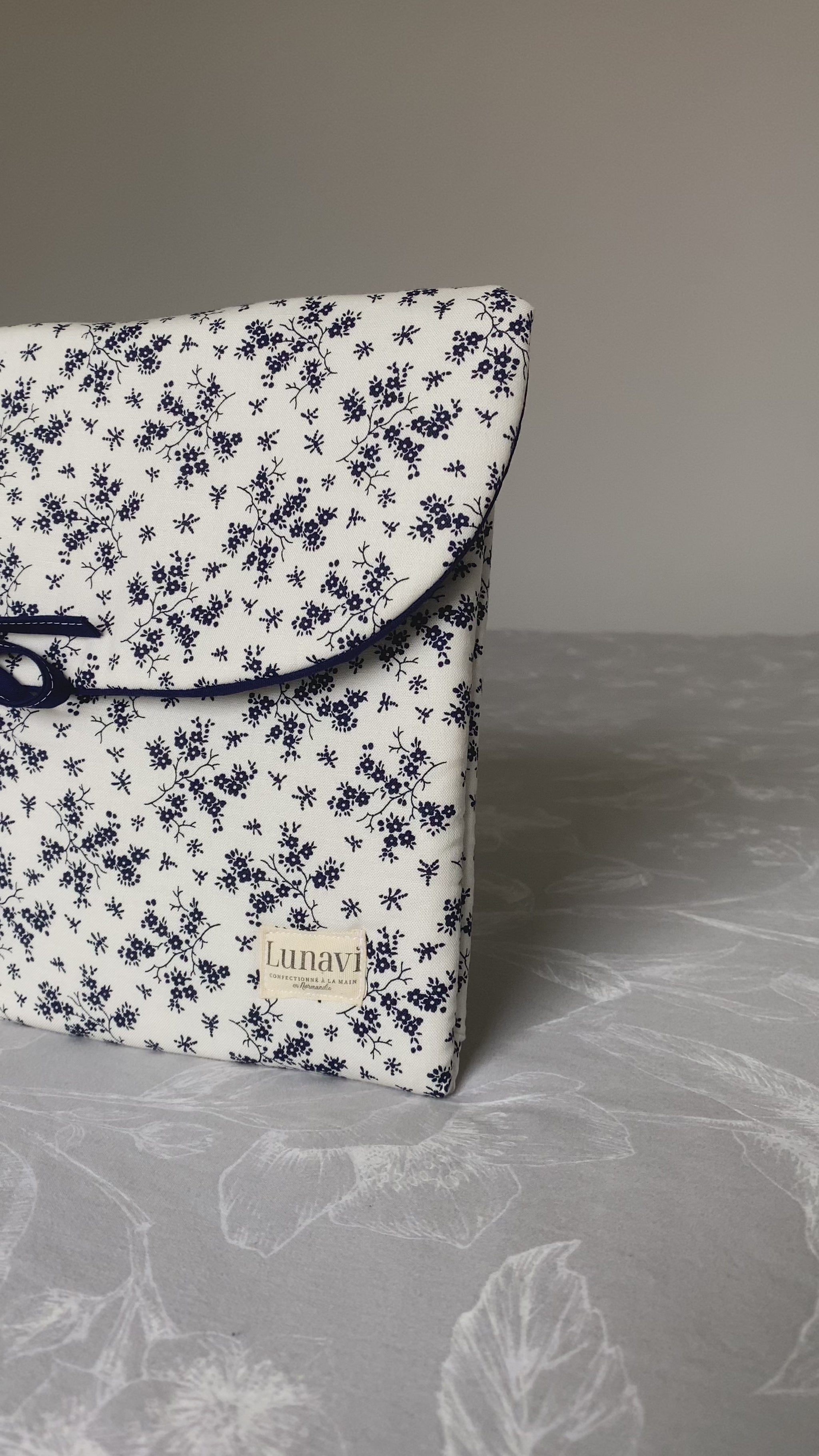 🎨 Couleur du tissu extérieur : blanc avec des fleurs bleues marines.