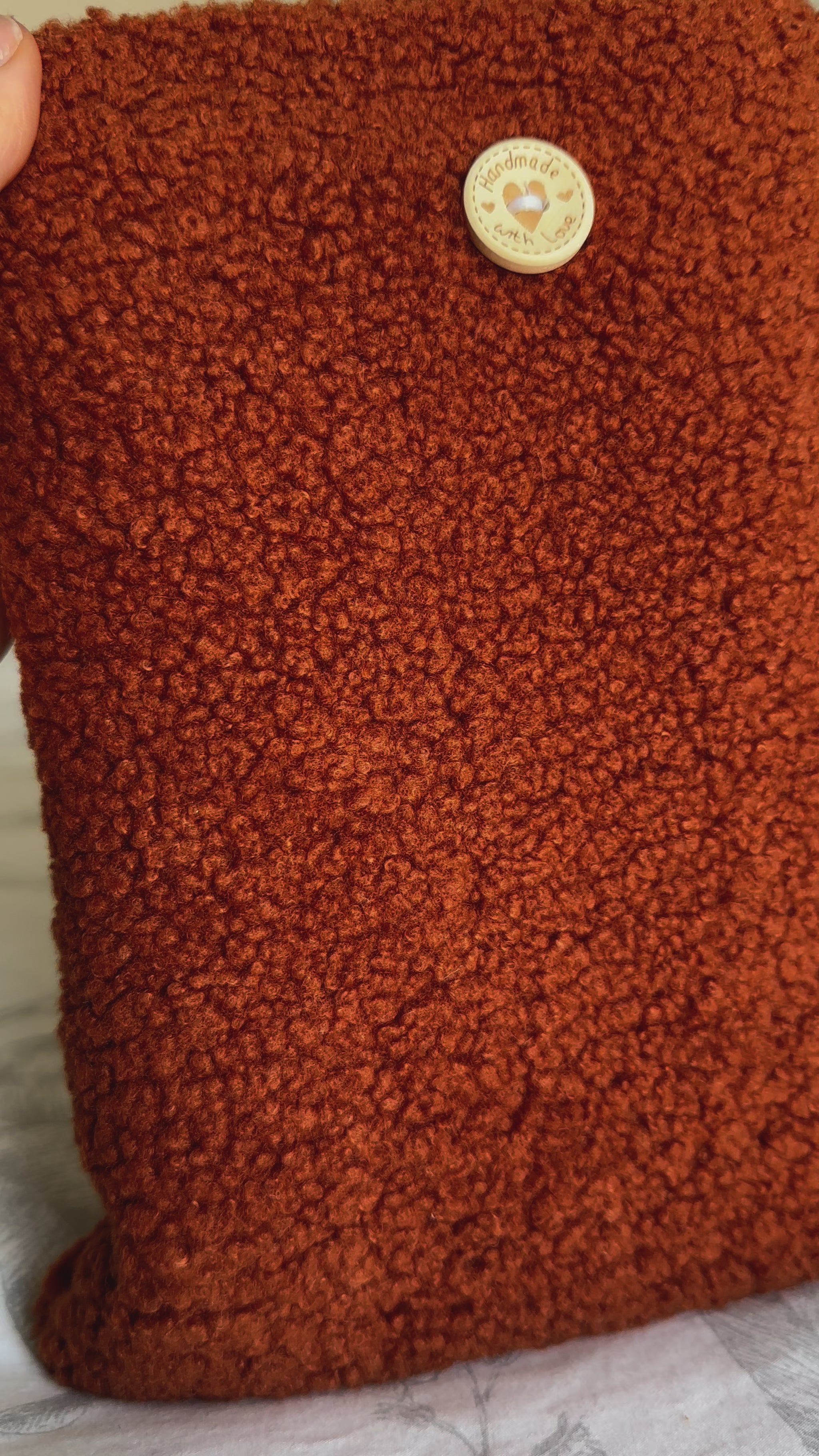 🏵️ Un bouton en bois est cousue sur la face avant de la pochette pour la fermeture.