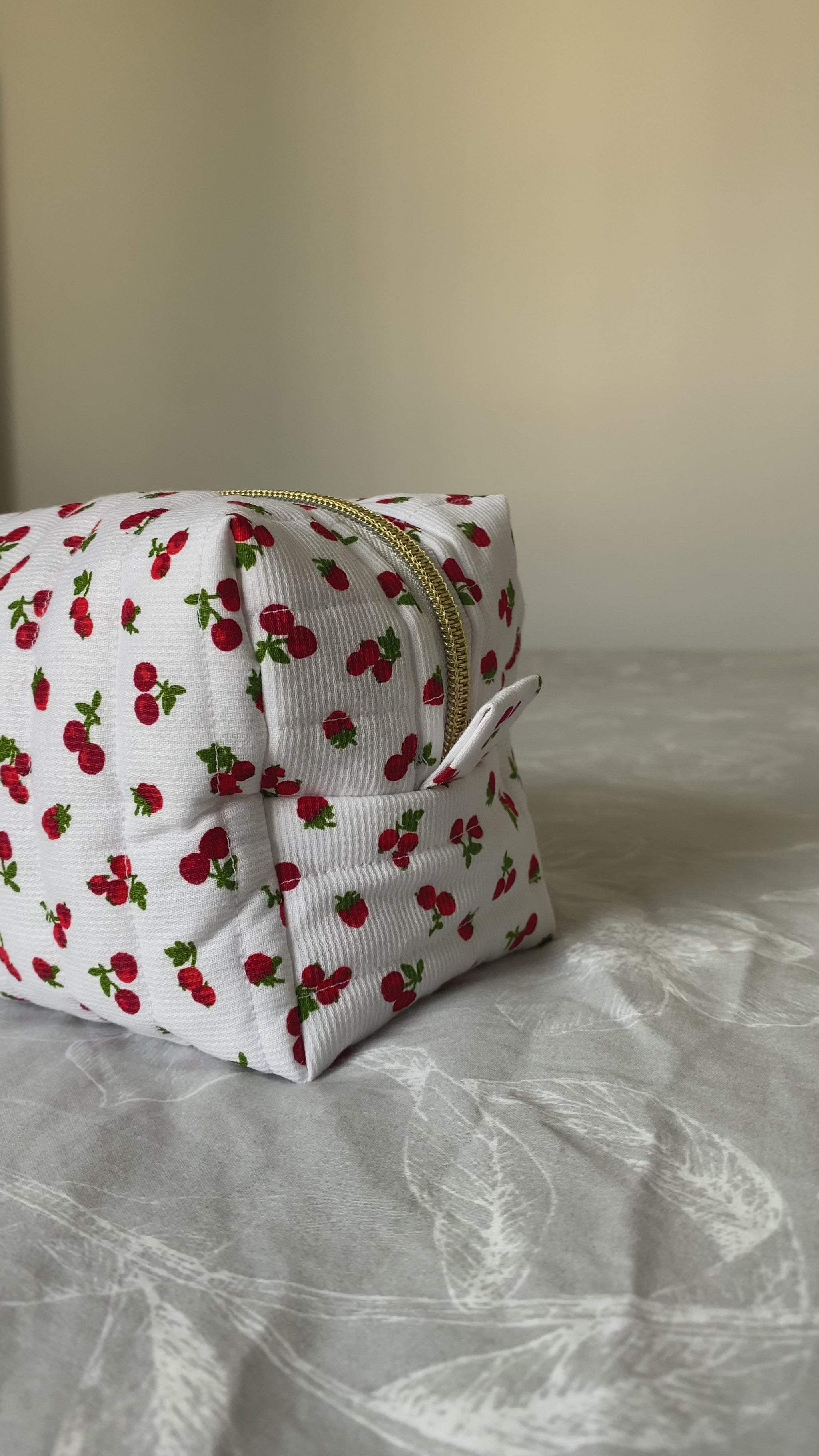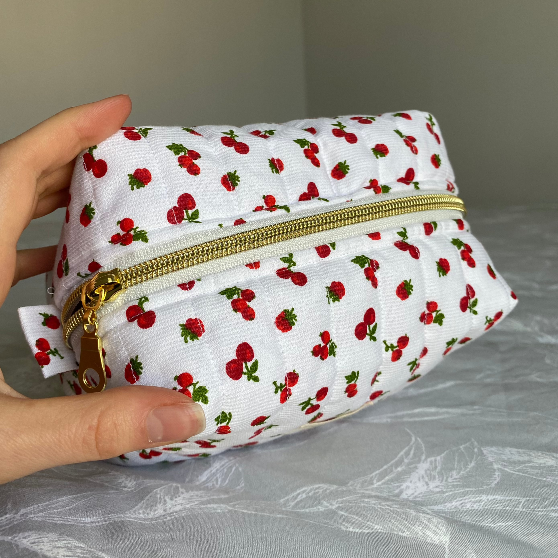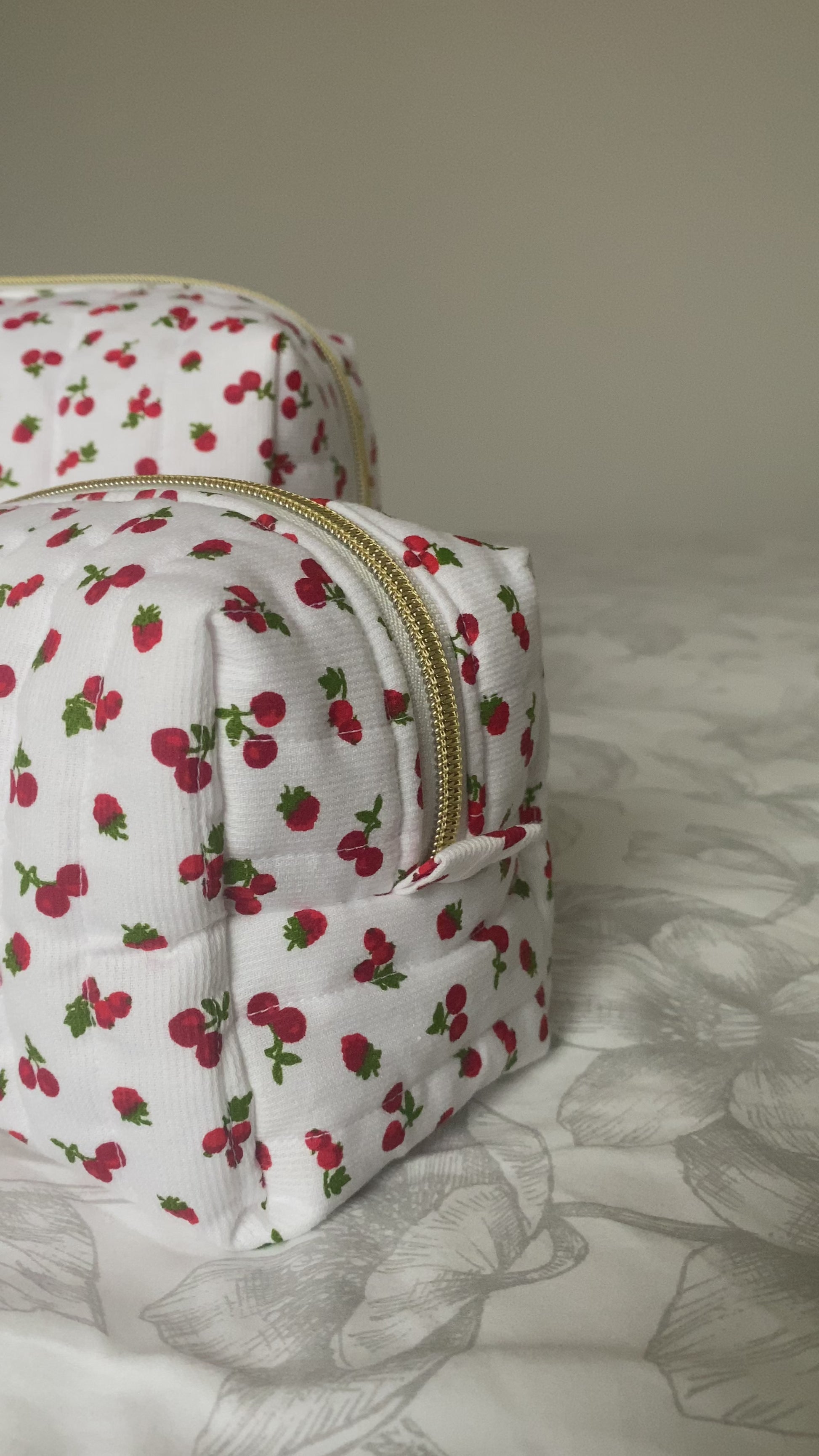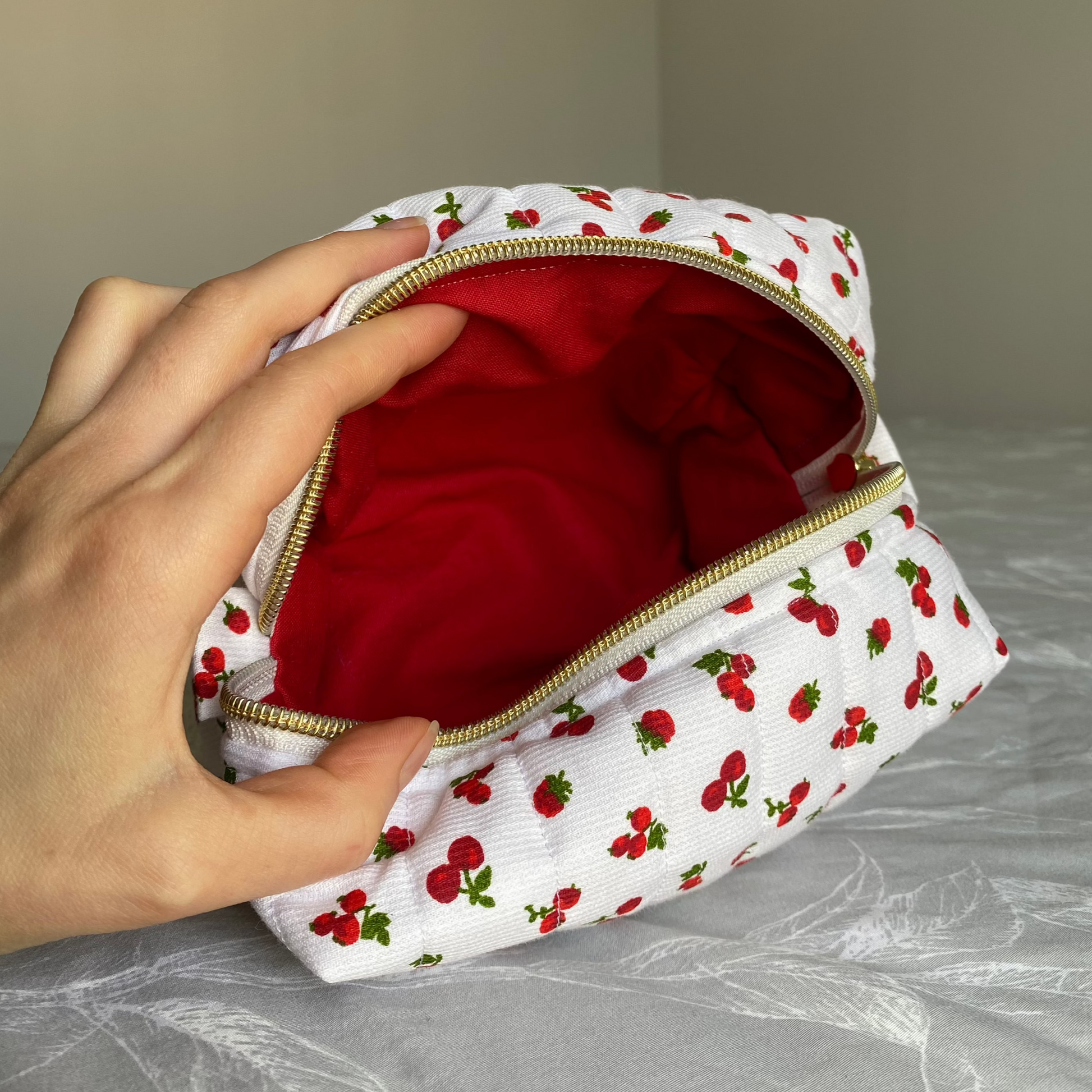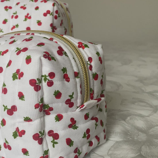 🎨 Tissu & couleur extérieur : blanc avec des cerises et des framboises.