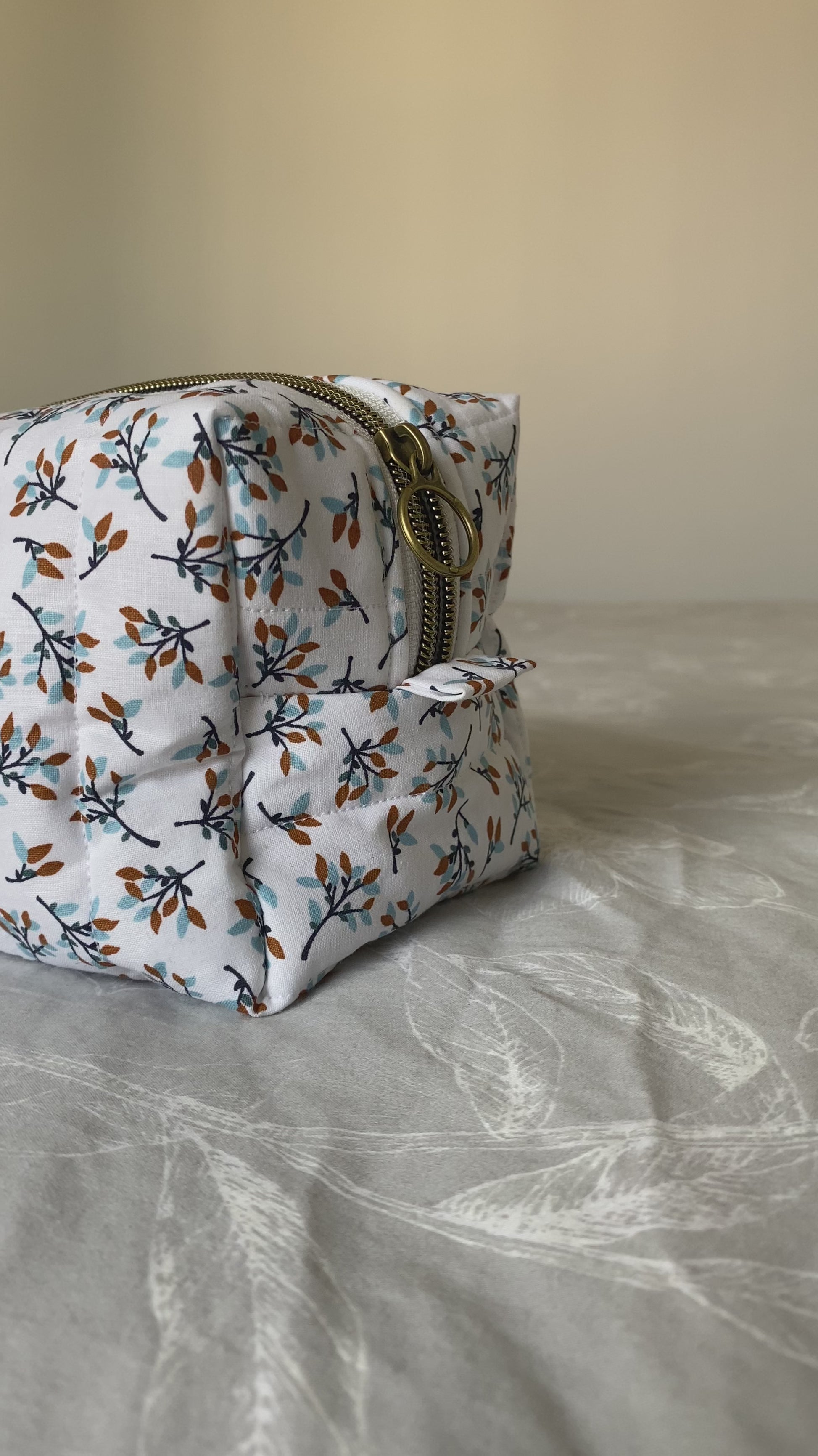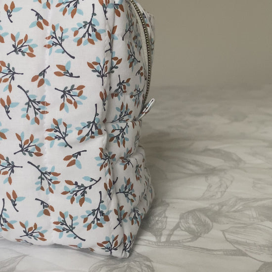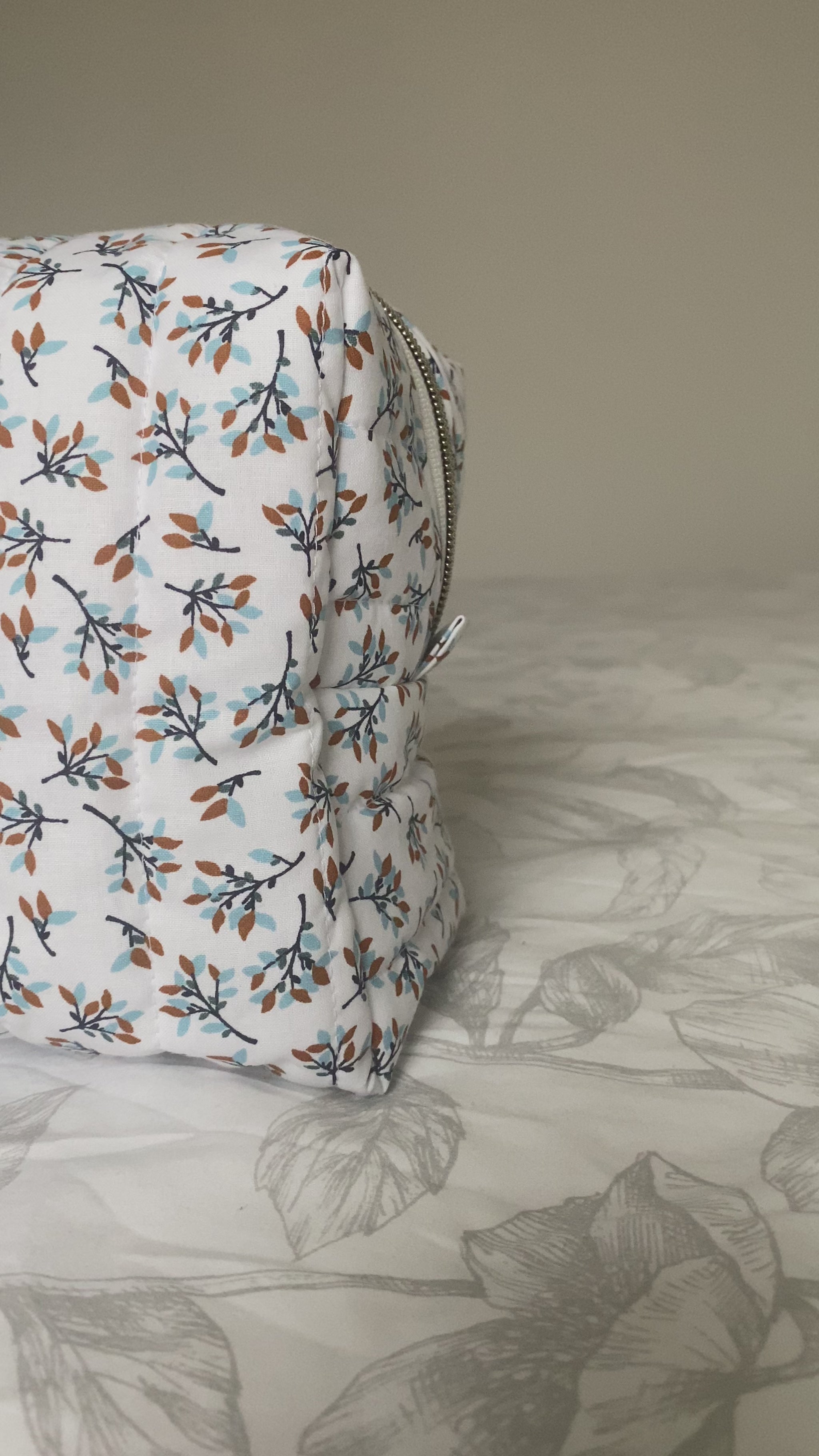🎨 Couleur du tissu extérieur : blanc avec des feuilles marrons et bleus clairs.